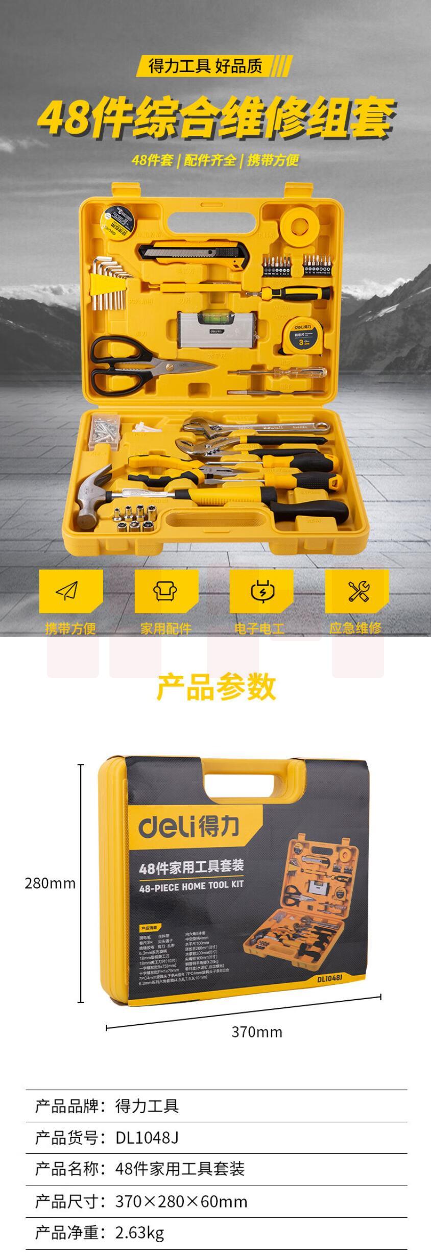 得力48件套工具套装 维修工具箱DL1048J