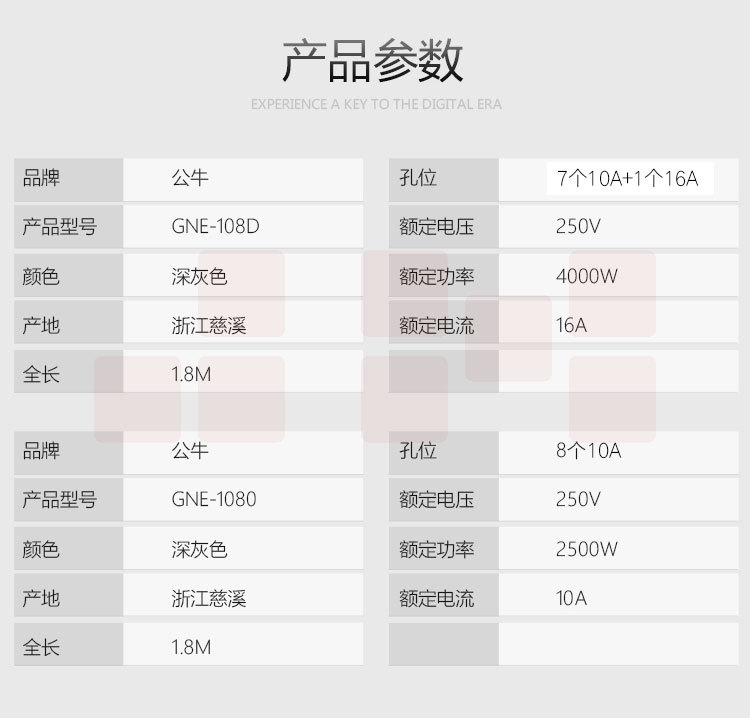 公牛GNE-108D 1.8米线长16A机柜插座接线板