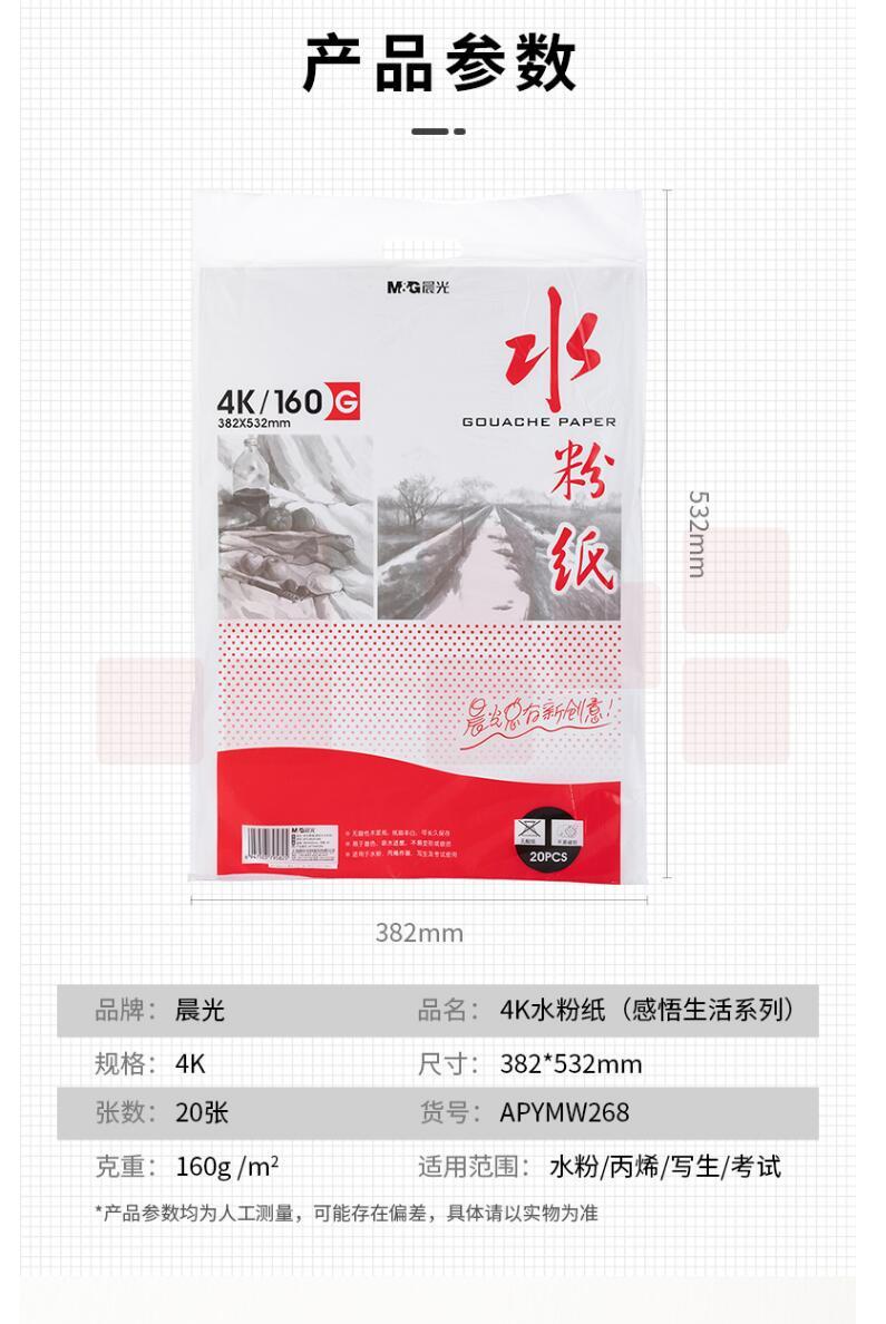 晨光 APYMW268 4K/160g水粉纸 专业美术绘画纸素描纸 20页/袋 货号:HXE