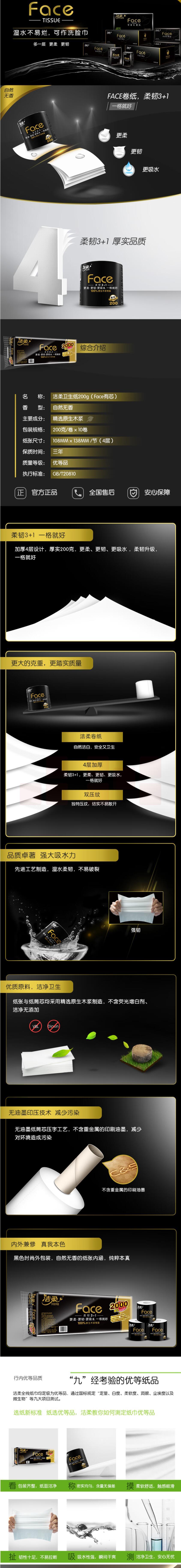 洁柔卷纸 黑Face加厚4层200g*10卷 卫生纸 1提