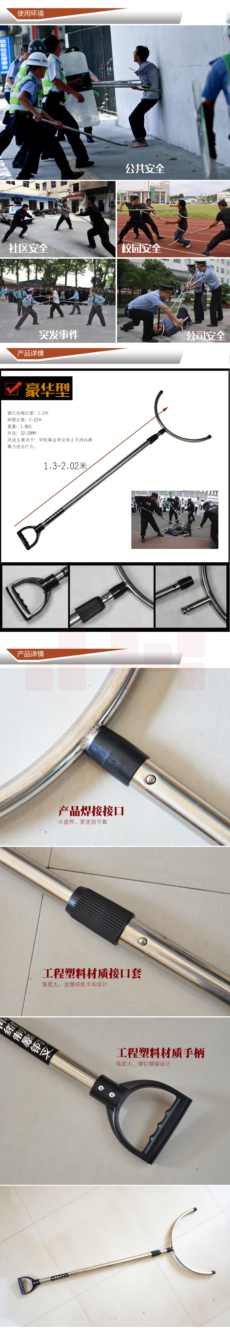 不锈钢保安防暴钢叉/防爆钢叉腰叉单位校园安保器材