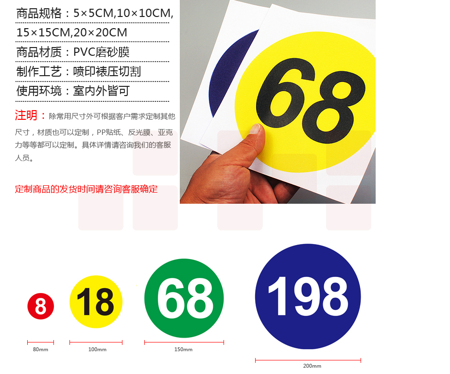 不干胶号码贴 直径15cm 0-9号 货号:JC