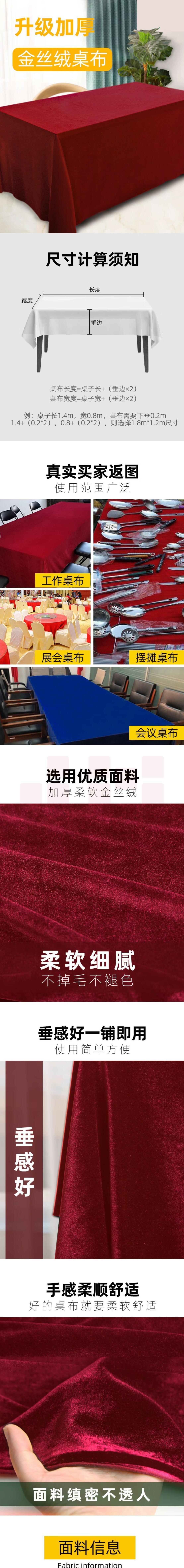会议桌布红色绒布长方形 中厚酒红色 100*160CM