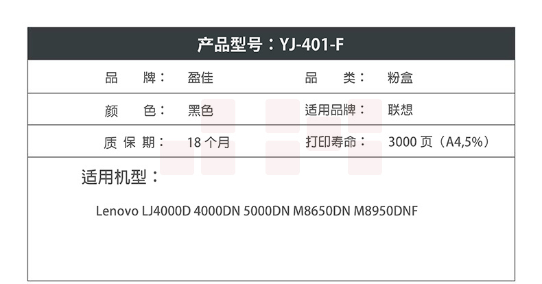 盈佳YJ LT401黑粉 适用机型:Lenovo LJ4000D 4000DN 5000DN M8650DN M8950DNF