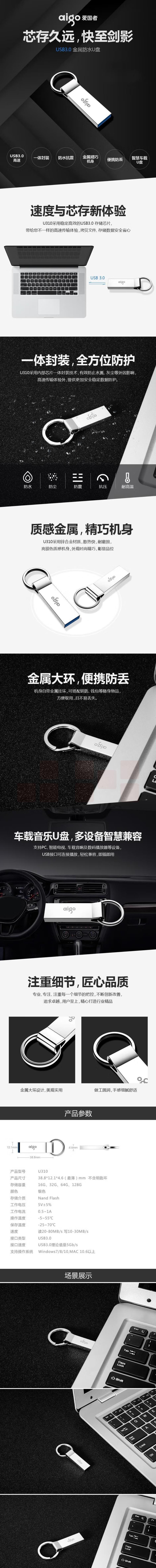 爱国者 128GB U盘 USB3.0 高速读写150MBS U310 金属U盘
