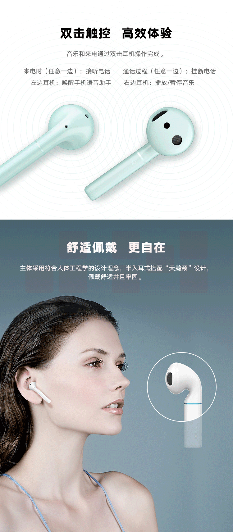 荣耀 FlyPods 3无线耳机 真无线蓝牙耳机 双耳立体声 半入耳 音乐耳机 铃兰白