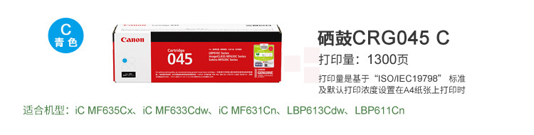 佳能(Canon)CRG045 C青色 硒鼓 (适用于iC MF635