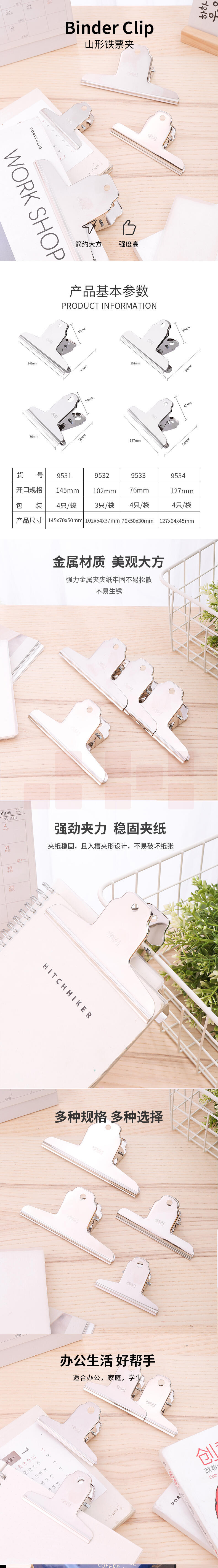 得力(deli)4只装 127mm 票夹 山形铁票夹 画板夹 铁夹子 大号 办公文具 9534
