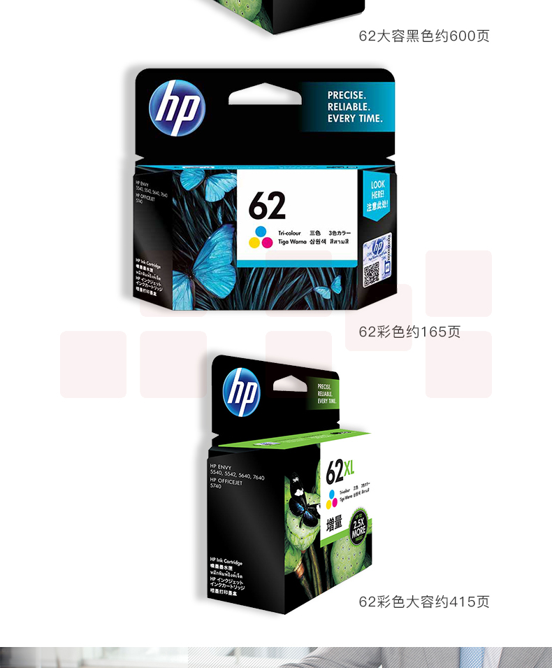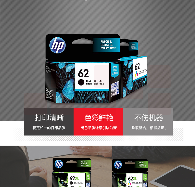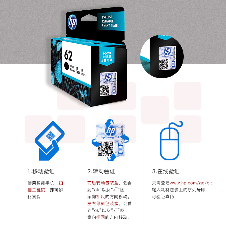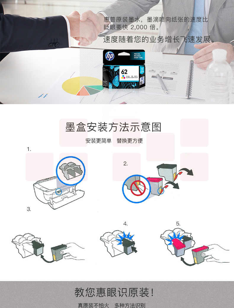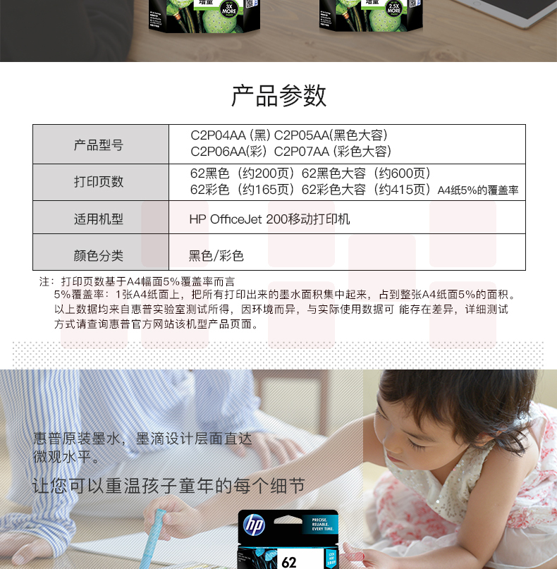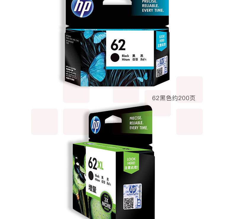 惠普(HP)C2P04AA 62 原装黑色墨盒 适用于HP OfficeJet 200 移动打印机 约200页