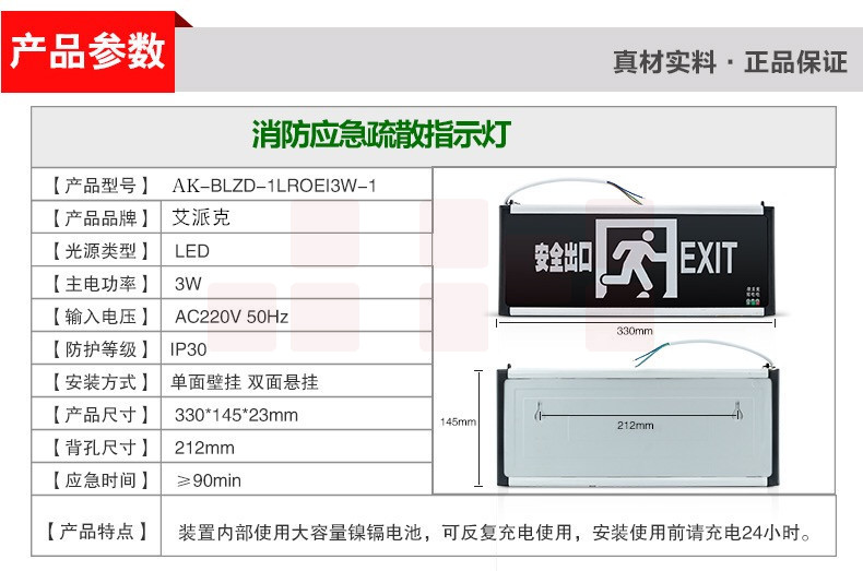 艾派克 单面向左 LED安全出口指示灯;产品尺寸:332*23*145mm
