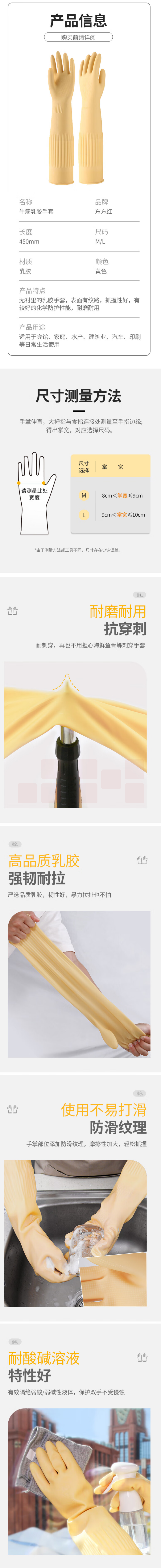 东方红 45CM加长防护手套 加厚橡胶防水防寒手套 3双 货号:JC