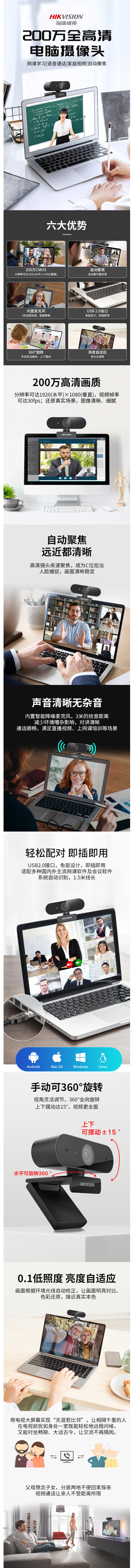海康威视 外置usb视频高清广角会议摄像 1080P DS-E12A 货号:JC