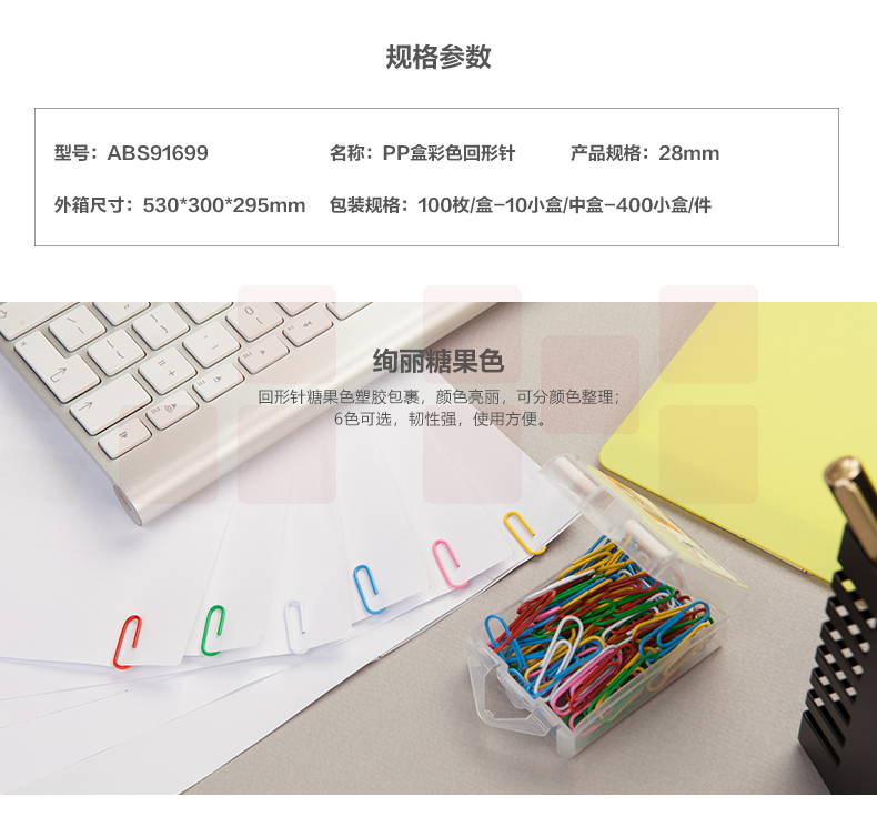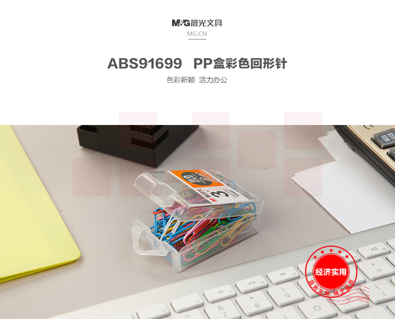 晨光 3号彩色回形针 曲别针 100枚 盒装ABS91699