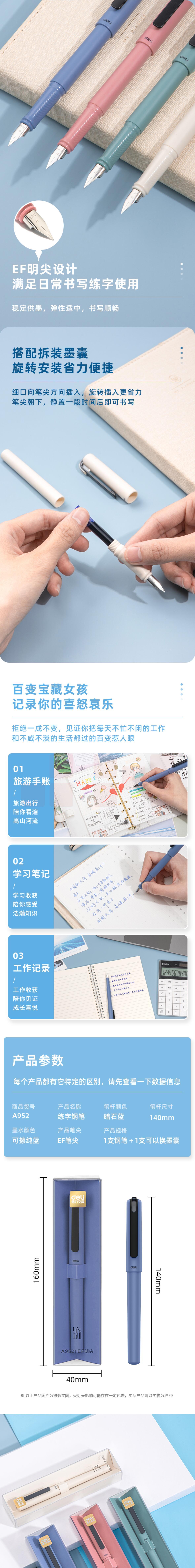 得力(deli)乐素正姿练字钢笔 书写签字墨水笔EF明尖(豆沙红)A952