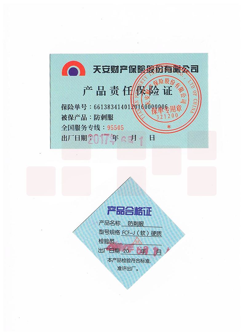 防刺服:重量2.3kg,防护面积≥0.3㎡;