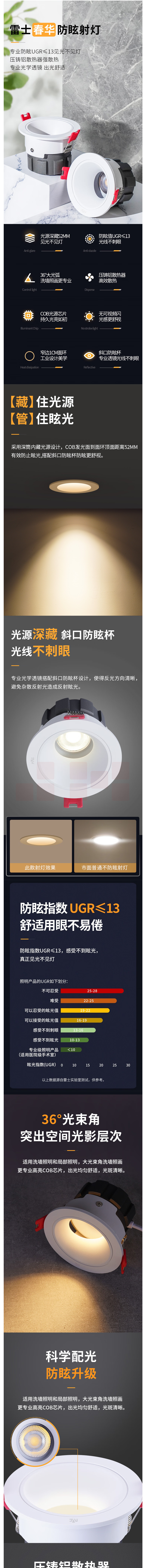 雷士 LED射灯客厅天花筒灯嵌入式铝材白色 7瓦 开孔75-80mm 暖白 货号:JC