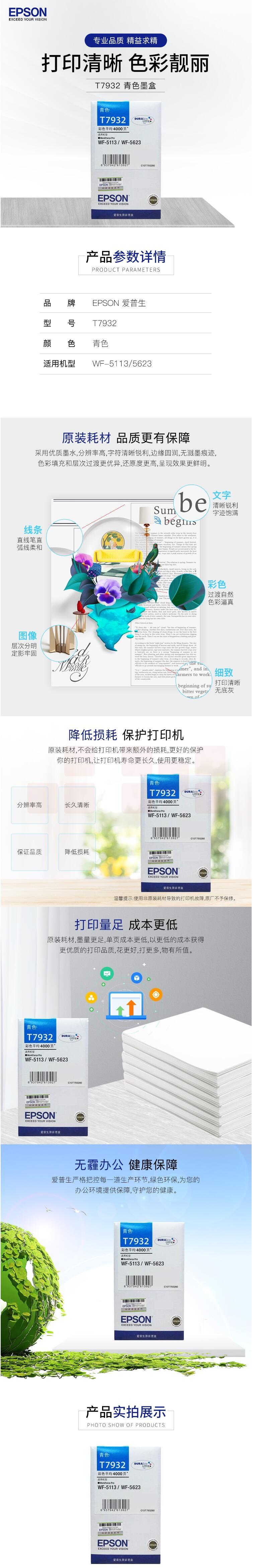 爱普生(EPSON)T7932 青色墨盒 (适用WF-5113/5623机型)约4000页