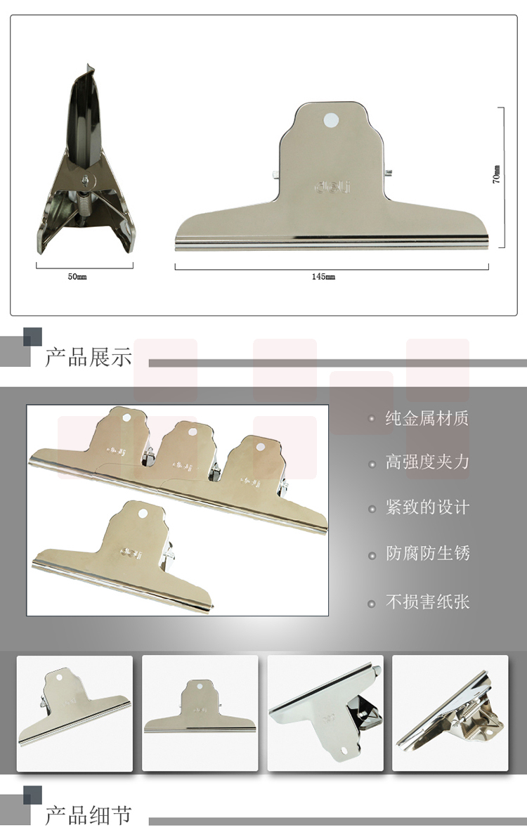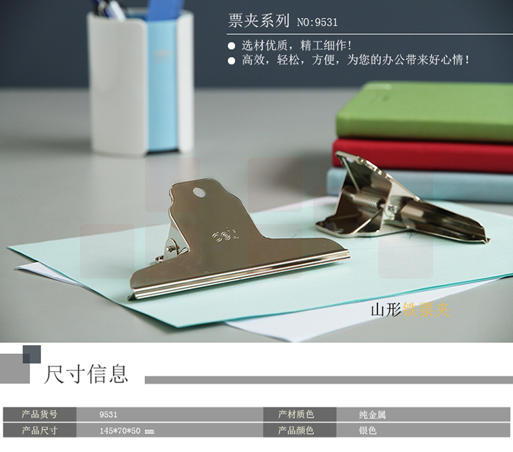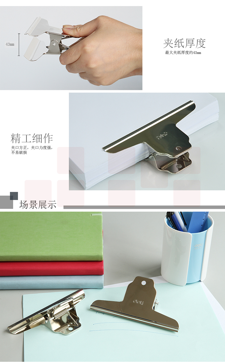 得力 4只145mm山形票据铁票夹 财务票据夹金属票据文件夹子 大号9531