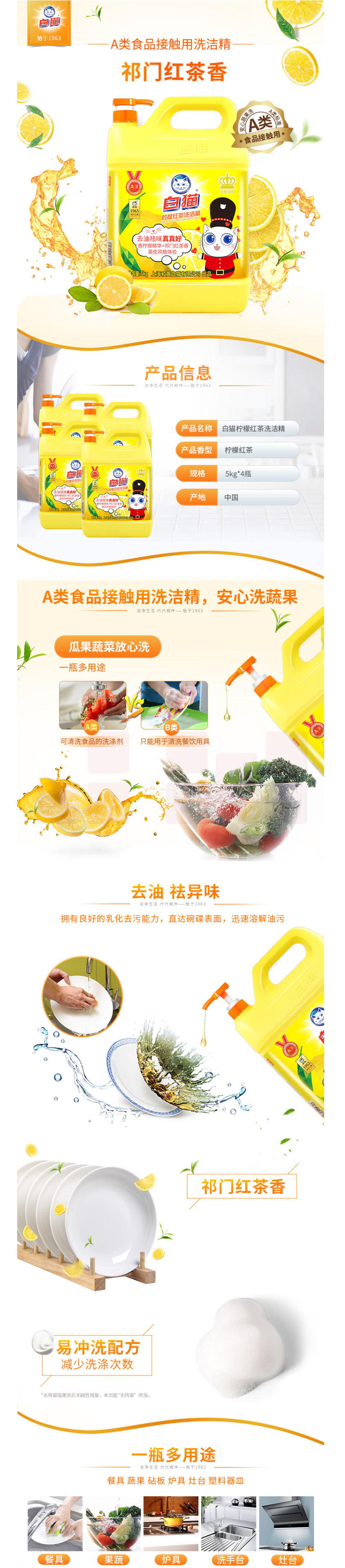 白猫柠檬红茶洗洁精(英伦版)5kg(整箱装4瓶)