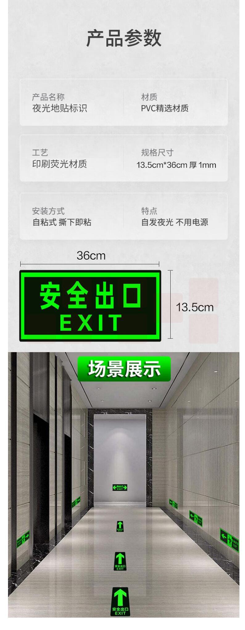 安全出口墙贴 指示牌夜光墙贴 14*36cm 货号:GD