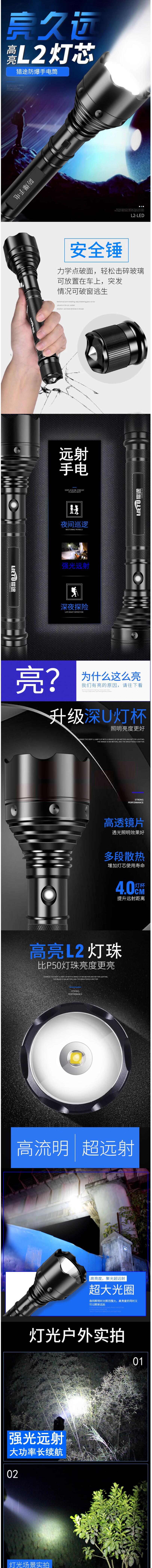 猎途 LED远射超亮强光手电筒 长款8000 可充电 货号:LJ