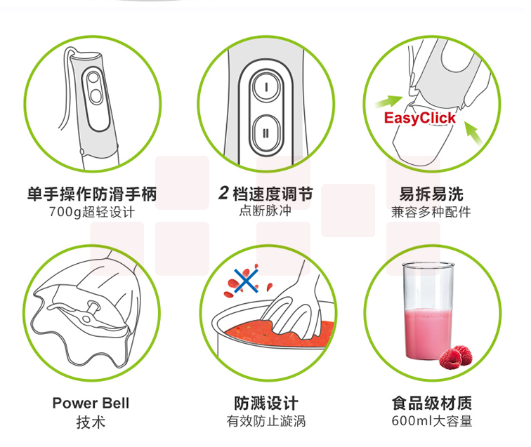 博朗 MQ525 料理机 家用多功能手持式 打蛋切菜婴儿辅食搅拌机榨汁机料理棒