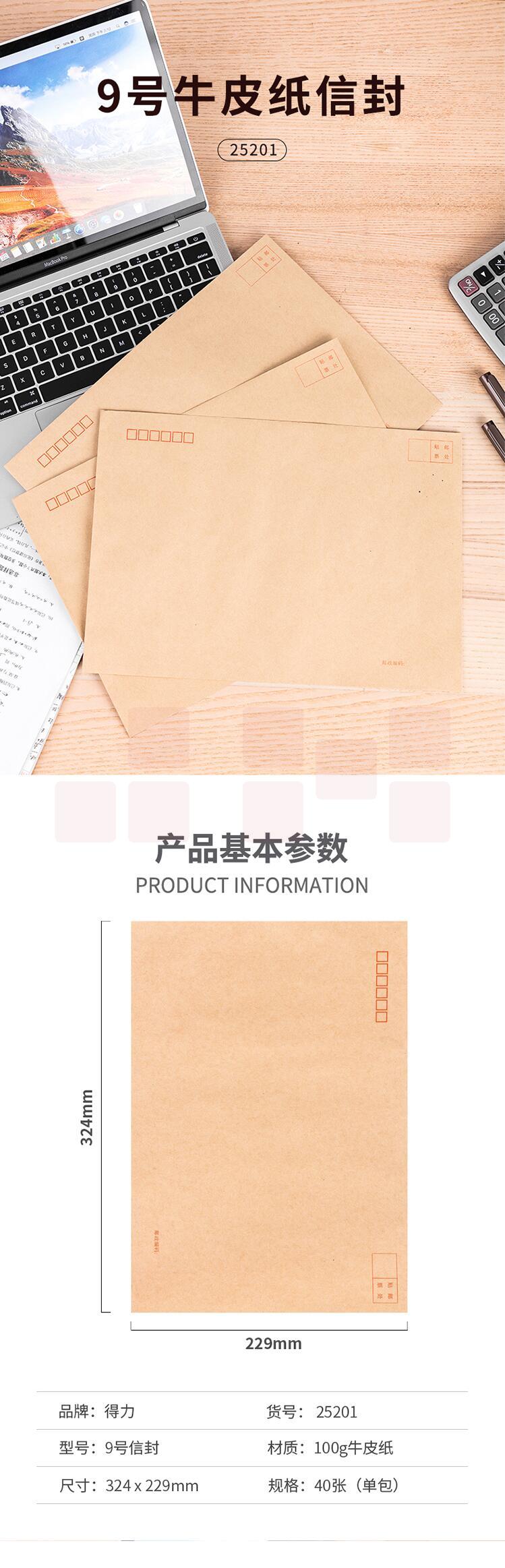 得力 40张9号A4牛皮纸大信封229*324mm 25201
