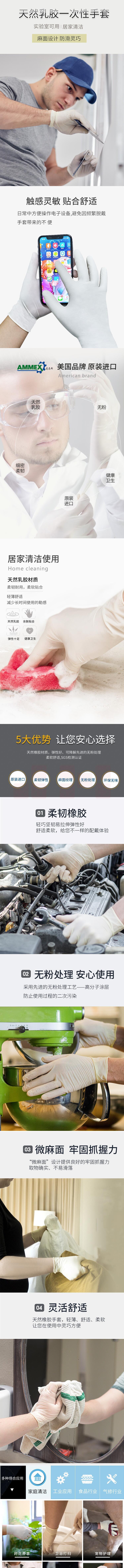 爱马斯 TLFC42100 一次性乳胶手套加厚橡胶清洁检查手套100只/盒小码