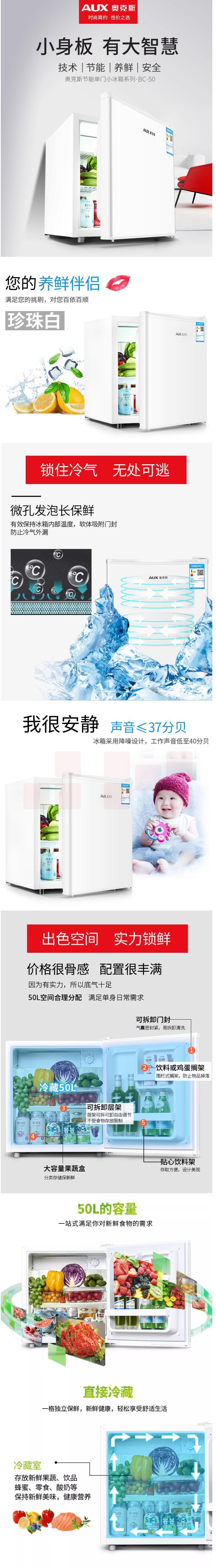 奥克斯 50升单冷藏家用小冰箱BC-50 货号:TXH