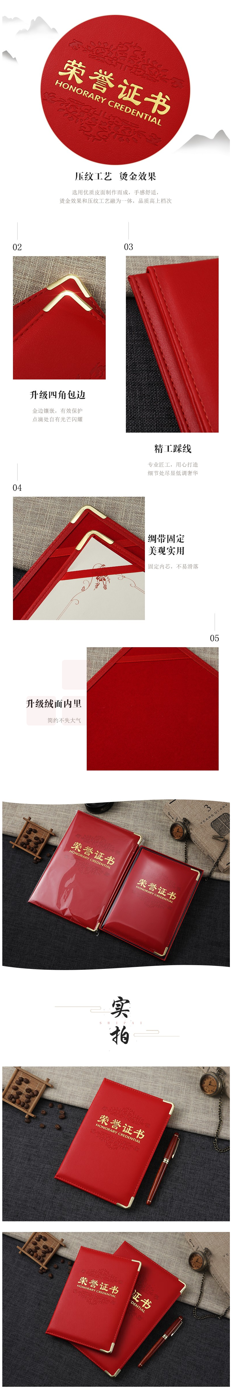 A4皮面荣誉证书 红色获奖证书 货号:JC