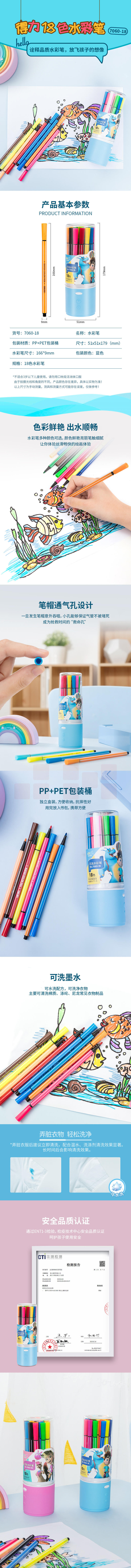 得力7060-18色细六角杆水彩笔(蓝)(桶)
