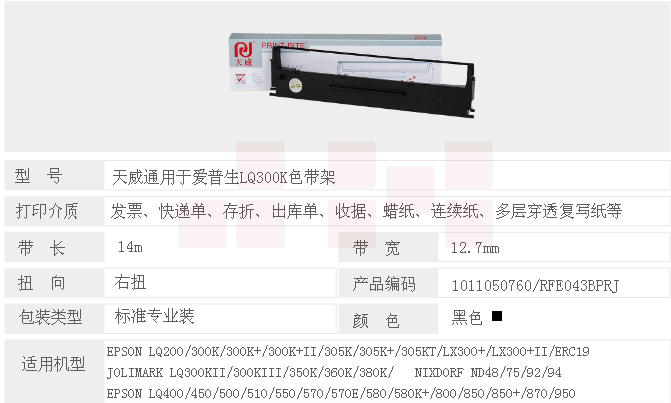 天威 LQ300K+II 800K色带 爱普生 LQ850 300K LQ580K+