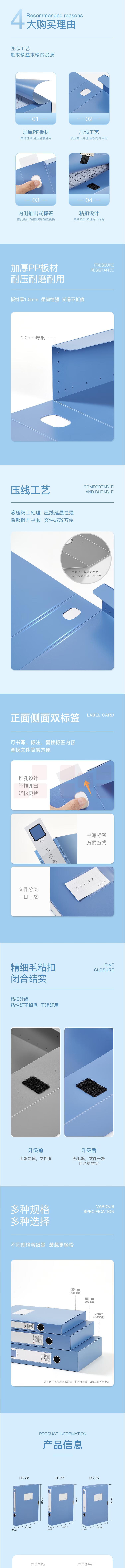 齐心 10个装 55mm加厚档案盒 板材厚度1mm A4文件盒 加厚粘扣资料盒 蓝色 HC-55-10