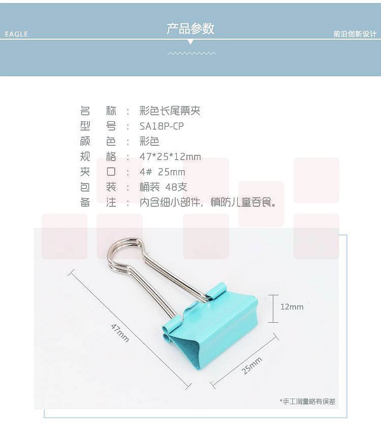 产品名称:益而高SA18P-P长尾夹黑色25mm/48支/筒(筒)