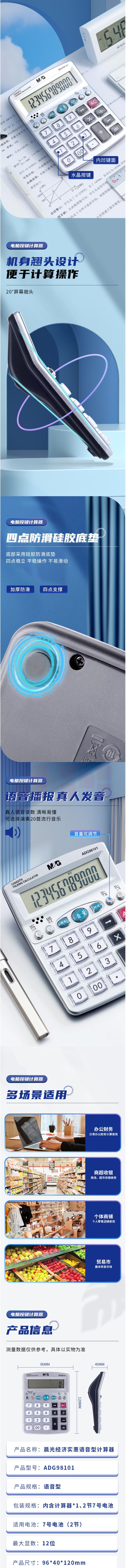 晨光(M&G)语音型计算器 水晶按键桌面计算机12位大屏幕计算器ADG98101
