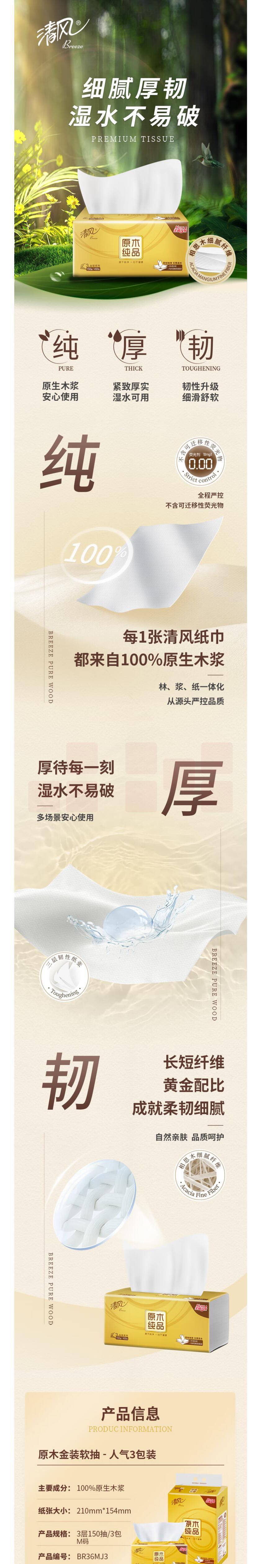 清风抽纸 原木金装 3层150抽 1包 M码 亲肤无刺激