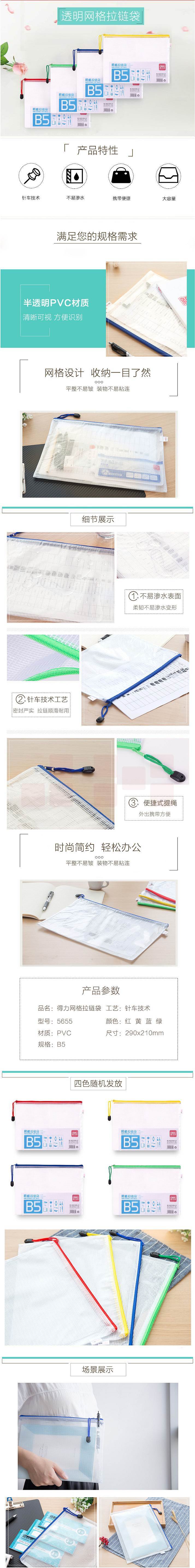 得力 B5文件袋 10只装 网格拉链袋290*210mm 5655(混色)