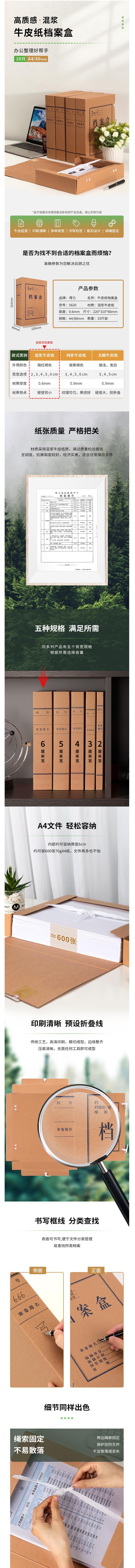 得力(deli)10只60mm混浆250g牛皮纸文件盒 档案盒 5620