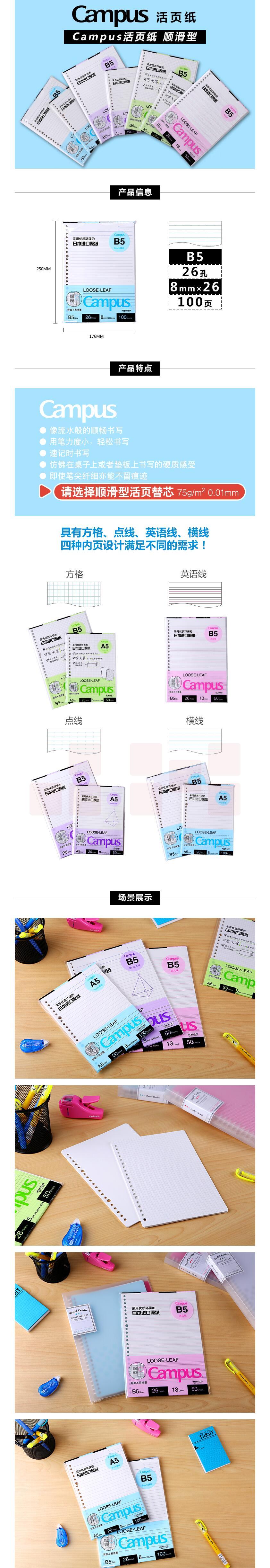 国誉 B5活页纸 活页本替芯 8mm横线26行 100张1本 WCN-CLL1110 货号:JC