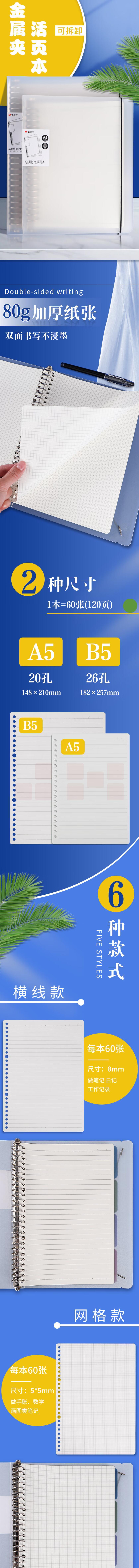 晨光(M&G)B5横线活页本60页 磨砂封面含四色分类页HB5600A 1本装