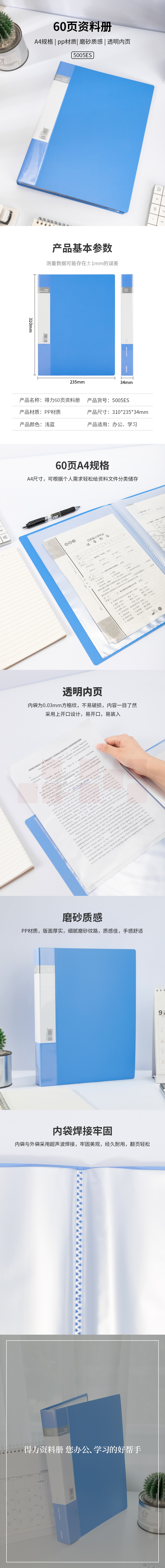 得力5005ES_60页资料册插页袋档案夹235*310*34mm(蓝)