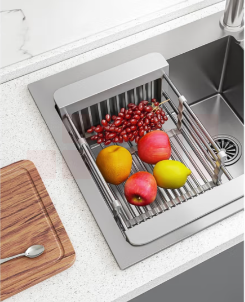 洗碗池水槽沥水架子可伸缩l沥水篮大号灰色