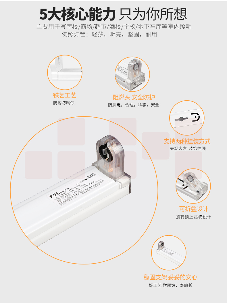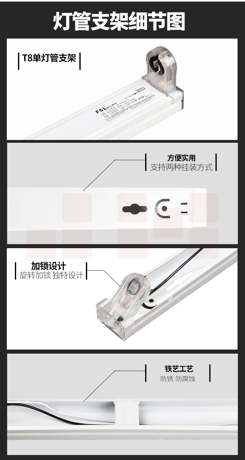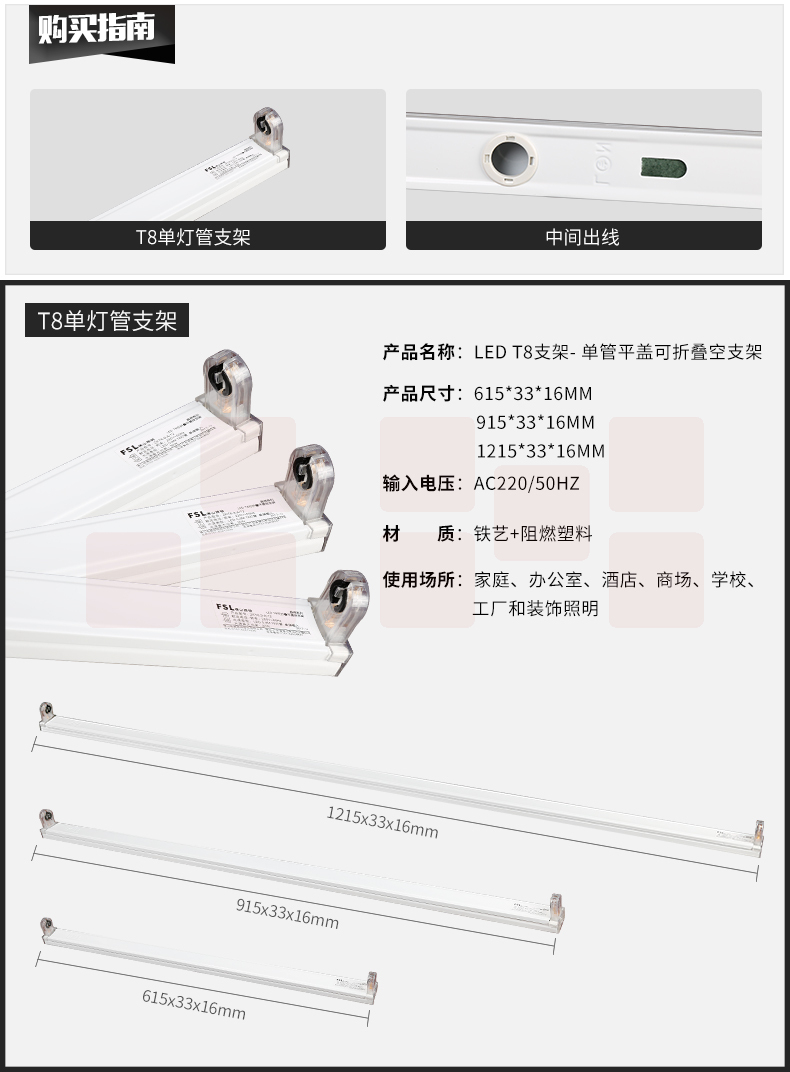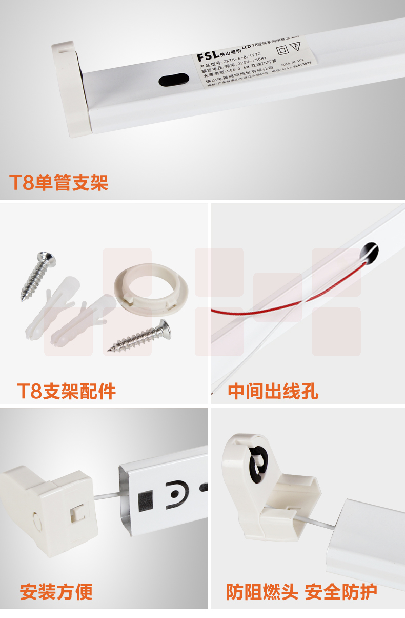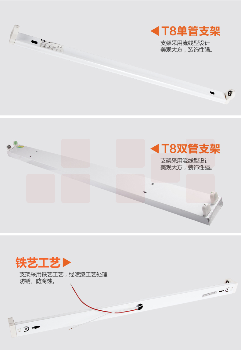 佛山(FSL)T8 单灯管带罩支架1.2米双端供电中间出线 LED灯管专用(不含安装)
