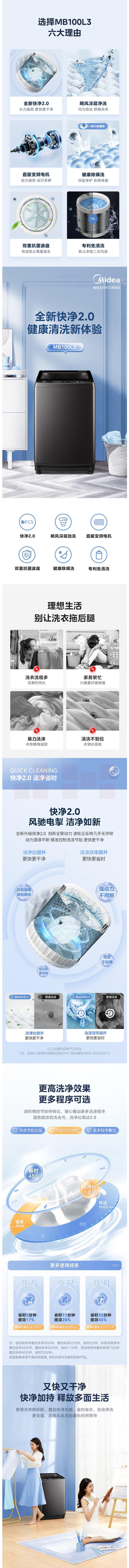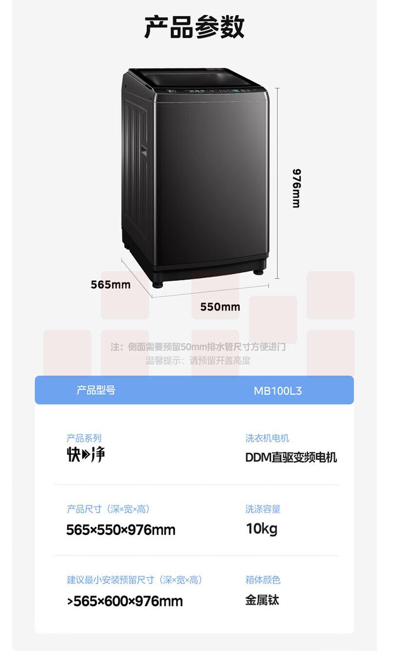 美的 10公斤波轮洗衣机 全自动直驱变频 MB100L1