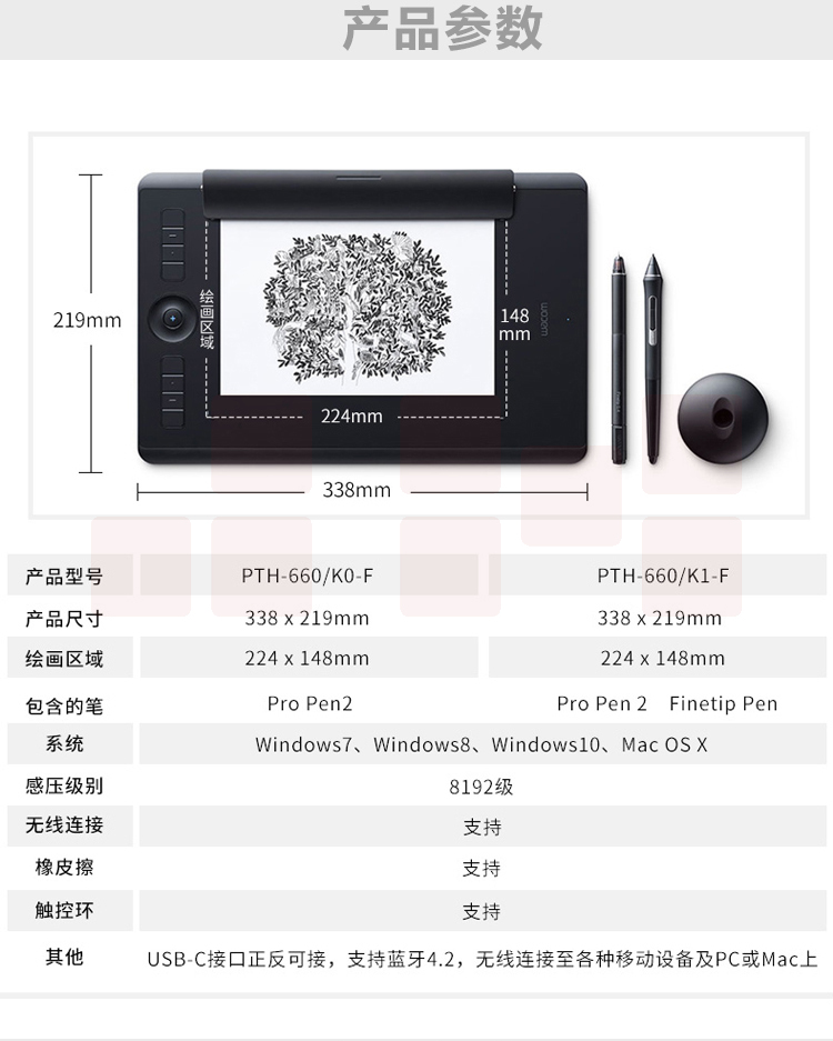 和冠(Wacom)PTH-660/K1-F Intuos 5 影拓 Pro 无线手绘板 电脑绘画板 绘图板 双模加强版 中号(M)