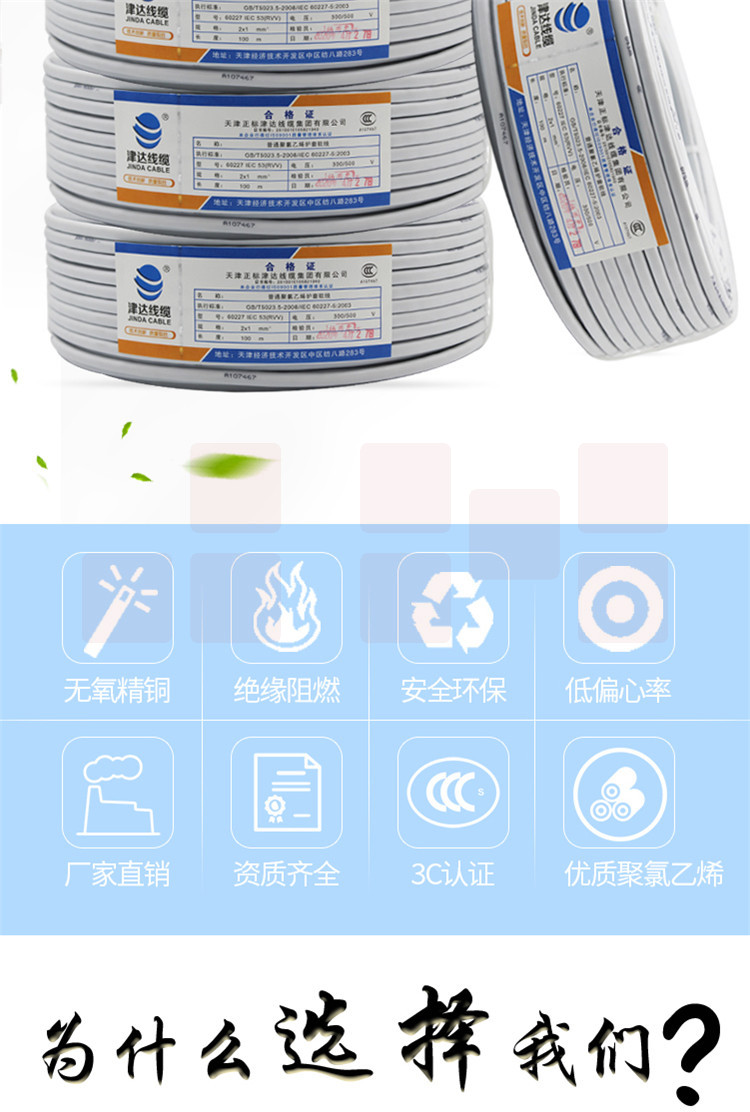 津达 RVV-2*2.5平方圆 100米/盘 电缆 护套线