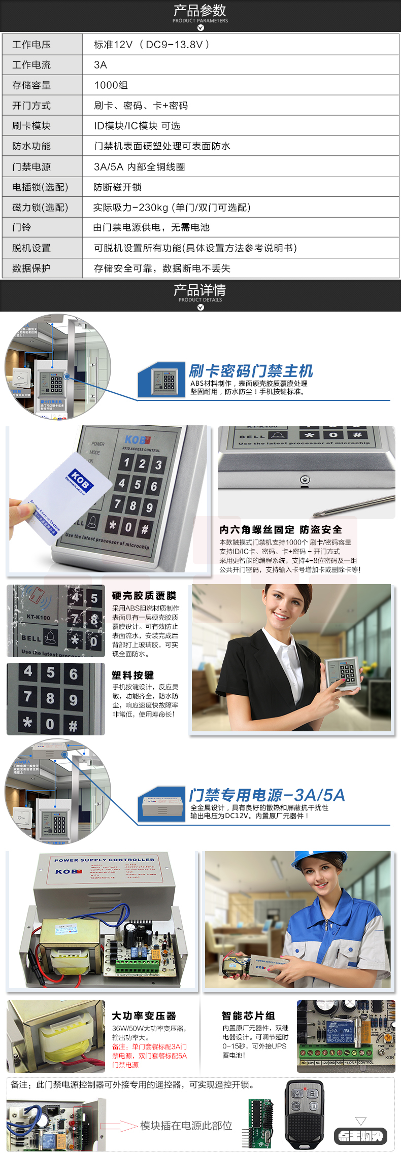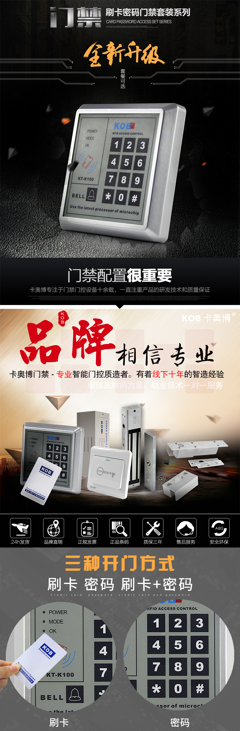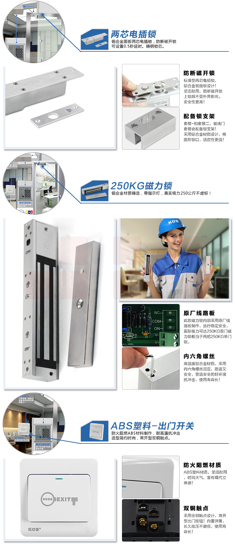 KOB电子门禁系统套装 门禁一体机磁力锁电插锁 2号