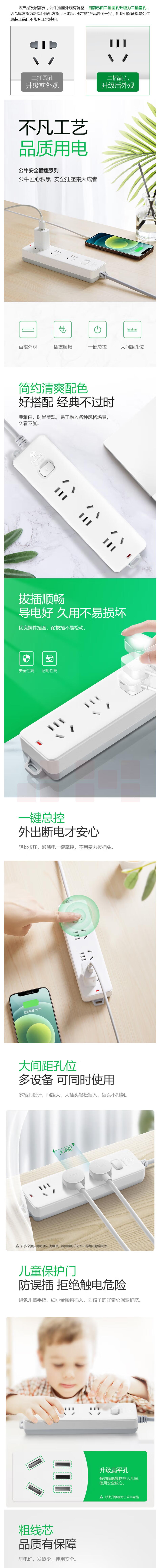 公牛GN-212 3位总控1.8米全长多位插座 接线板