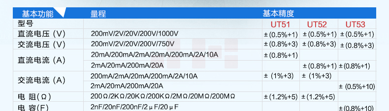 优利德(UNI-T)电工万用表数字数显式万能表 UT51 52 53 54 55 56