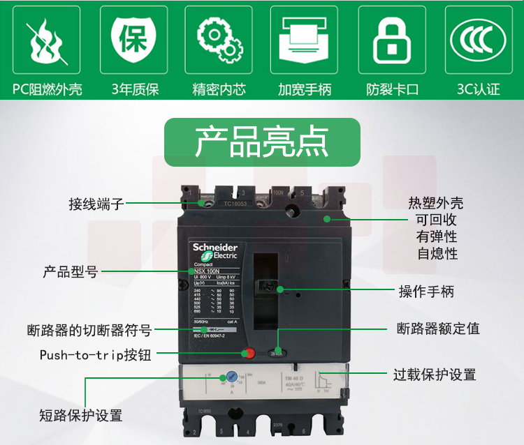 施耐德 NSX160F塑壳保护断路器 空气开关